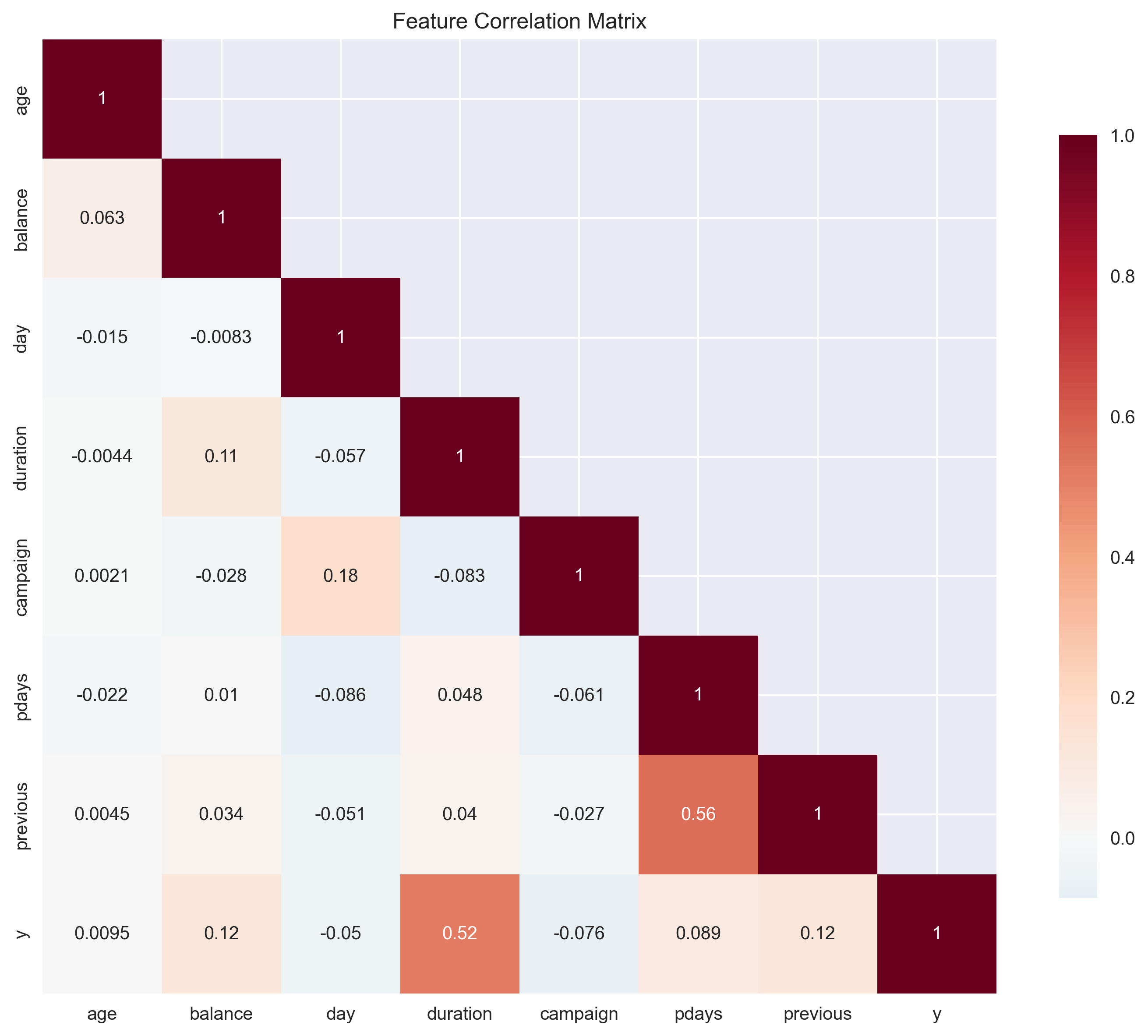 Campaign frequency shows diminishing returns beyond moderate contact levels (2-3 attempts optimal). The pdays and previous features reveal that customers with prior successful campaigns demonstrate significantly higher subscription rates.